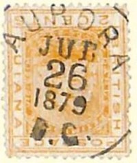 The following are the Date Stamps used at Aurora with EKD prior to 22 January 1901, the day marking the end of the reign of Queen Victoria. In addition to listing the Panda Type #, for reference, we also list the T&H Type from The Postage Stamps and Postal History of British Guiana by Townsend & Howe, the Type and referenced page from The Postal History of British Guiana by Edward B. Proud, and the referenced pages from British Guiana Coded Postmarks – Study paper No 3 by Michael Rego, for coded postmarks.