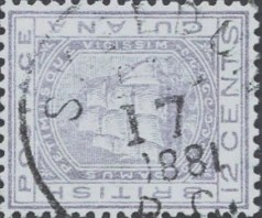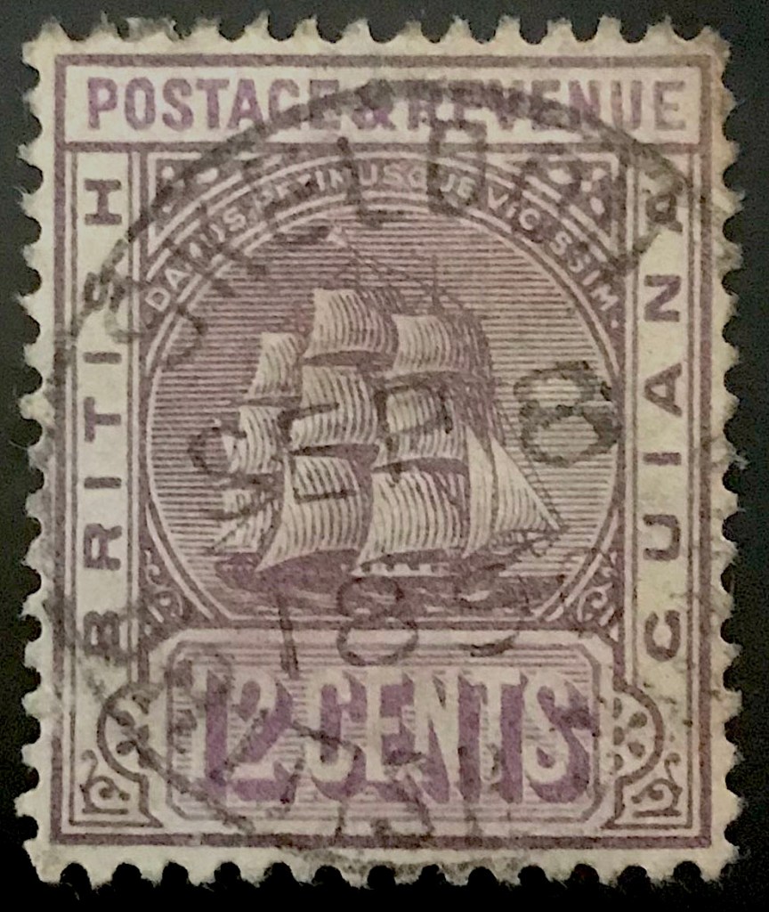The Skeldon Circular Date Stamp (C.D.S) is a Panda Type E12 postmark. The Panda Type E12 is Single Ring S.R. 22 – 23.5 mm with Protective Corners. 2 L.D. with Y.I.F. British Guiana at foot.