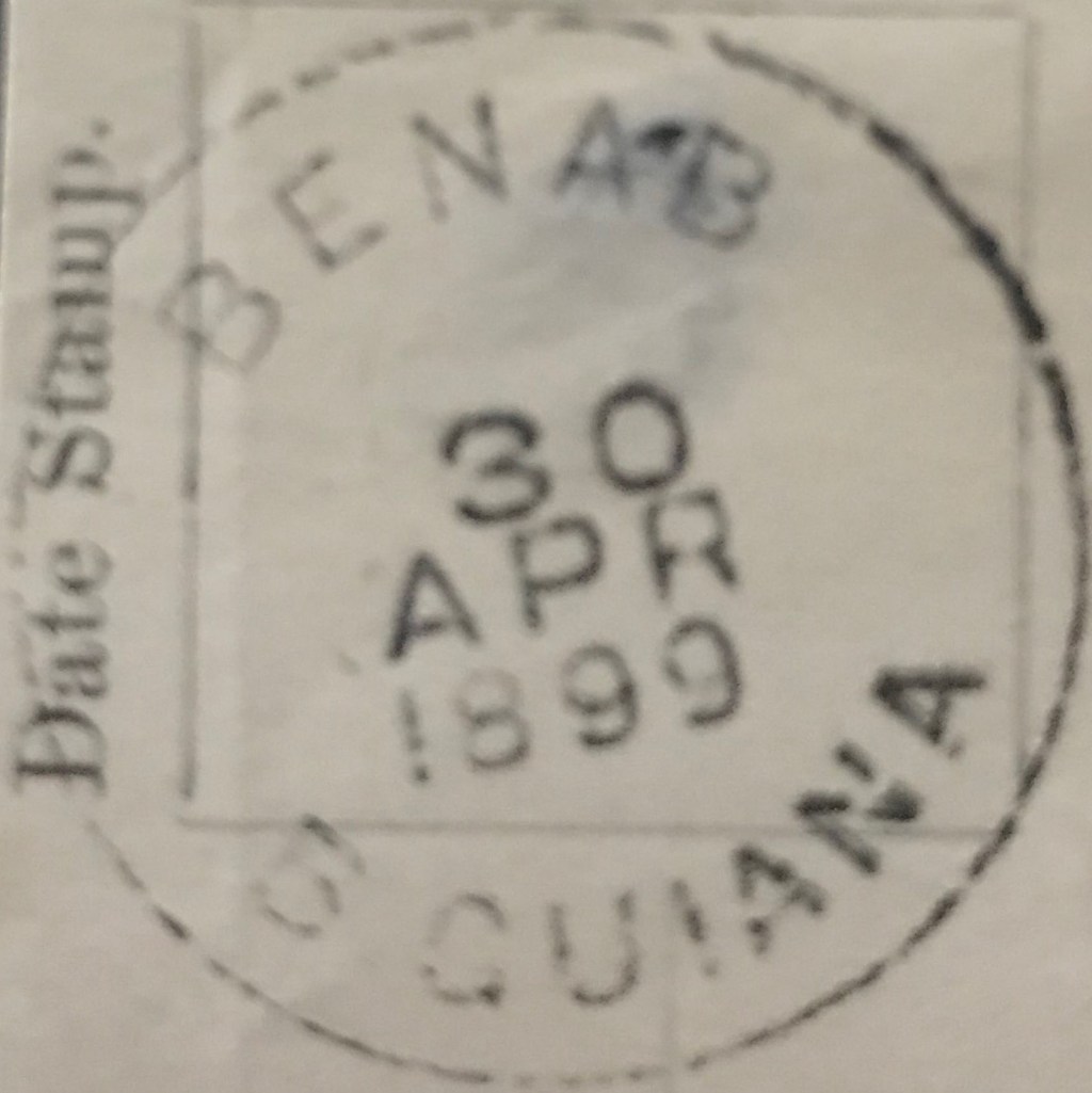 The following are the Date Stamps used at Benab with EKD prior to 22 January 1901, the day marking the end of the reign of Queen Victoria. In addition to listing the Panda Type #, for reference, we also list the T&H Type from The Postage Stamps and Postal History of British Guiana by Townsend & Howe, the Type and referenced page from The Postal History of British Guiana by Edward B. Proud, and the referenced pages from British Guiana Coded Postmarks – Study paper No 3 by Michael Rego, for code-marks.