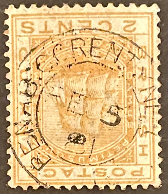 The Benab: Corentyne•Coast Circular Date Stamp (C.D.S) is a Panda Type E5 postmark. The Panda Type E5 is Double Ring (D.R.), 22.5-24mm, 2 line date (2 L.D.) with year abbreviated (Y.A.). Colony not shown.