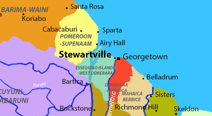 The Stewartville Post Office, located on the West Coast of Demerara, was opened by 1870 in the West Coast Demerara River Postal District. On January 1, 1880, the office was moved to the Telegraph Station and later transferred to Metenmeerzorg on November 1, 1890, at which point the Stewartville Post Office was closed. The office originally used the code mark “W5C” until 1880.