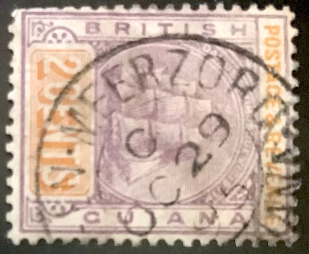 The Metenmeerzorg A Circular Date Stamp (C.D.S) is a Panda Type E11 postmark. The Panda Type E11 is Double Ring (D.R.), 23.5 – 24.5 / 13.5 – 14.5 mm with dividing dots separating office from colony. 2 L.D. with Y.A. B. Guiana at foot.