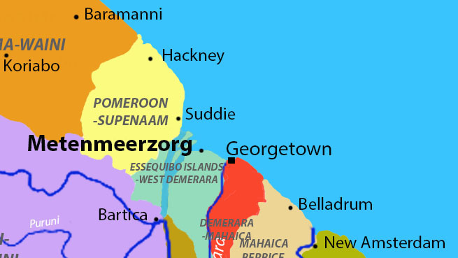 The Metenmeerzorg Circular Date Stamp (C.D.S) is a Panda Type E11 postmark. The Panda Type E11 is Double Ring (D.R.), 23.5 – 24.5 / 13.5 – 14.5 mm with dividing dots separating office from colony. 2 L.D. with Y.A. B. Guiana at foot.